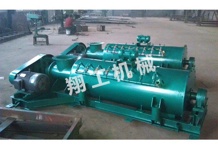 雙軸攪拌機(jī)主要由機(jī)殼、螺旋軸總成、驅(qū)動裝置、配管、蓋板、鏈罩等部件組成。