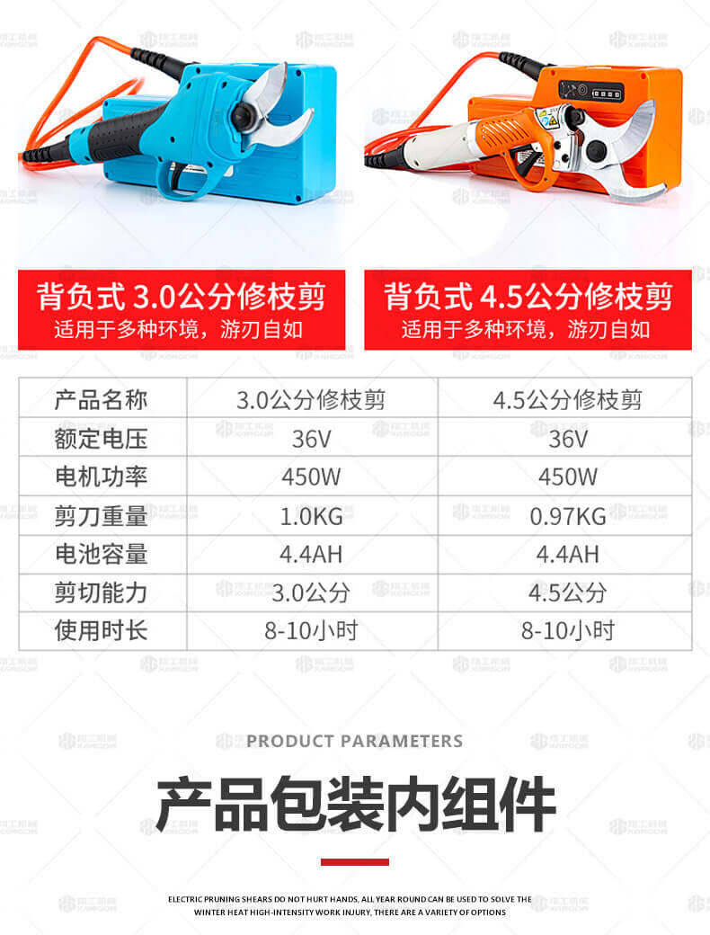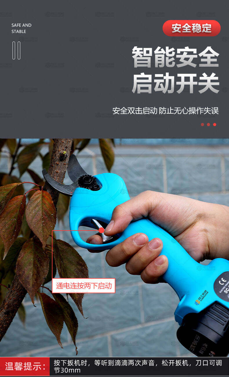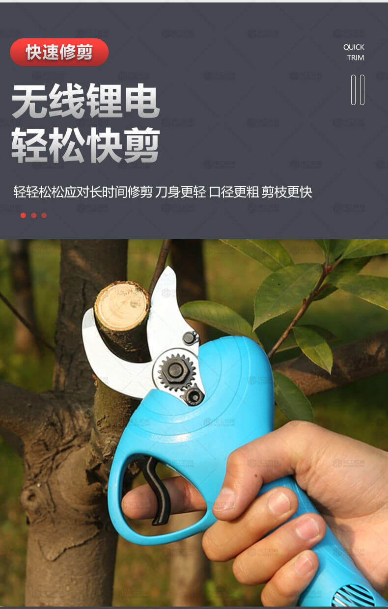 電動(dòng)修枝剪的使用大大提高了植物的修剪效率,降低了修剪工的工作強(qiáng)度,大受人們的喜愛(ài)。滿足了當(dāng)今社會(huì)簡(jiǎn)單輕巧的工作方式,一把小小的電動(dòng)修枝剪不傷手,一年四季均可以使用,解決寒冬酷暑高強(qiáng)度工作的傷害,電動(dòng)修枝剪有多種選擇,這是一款無(wú)線的電動(dòng)修枝剪,使用更加方便。